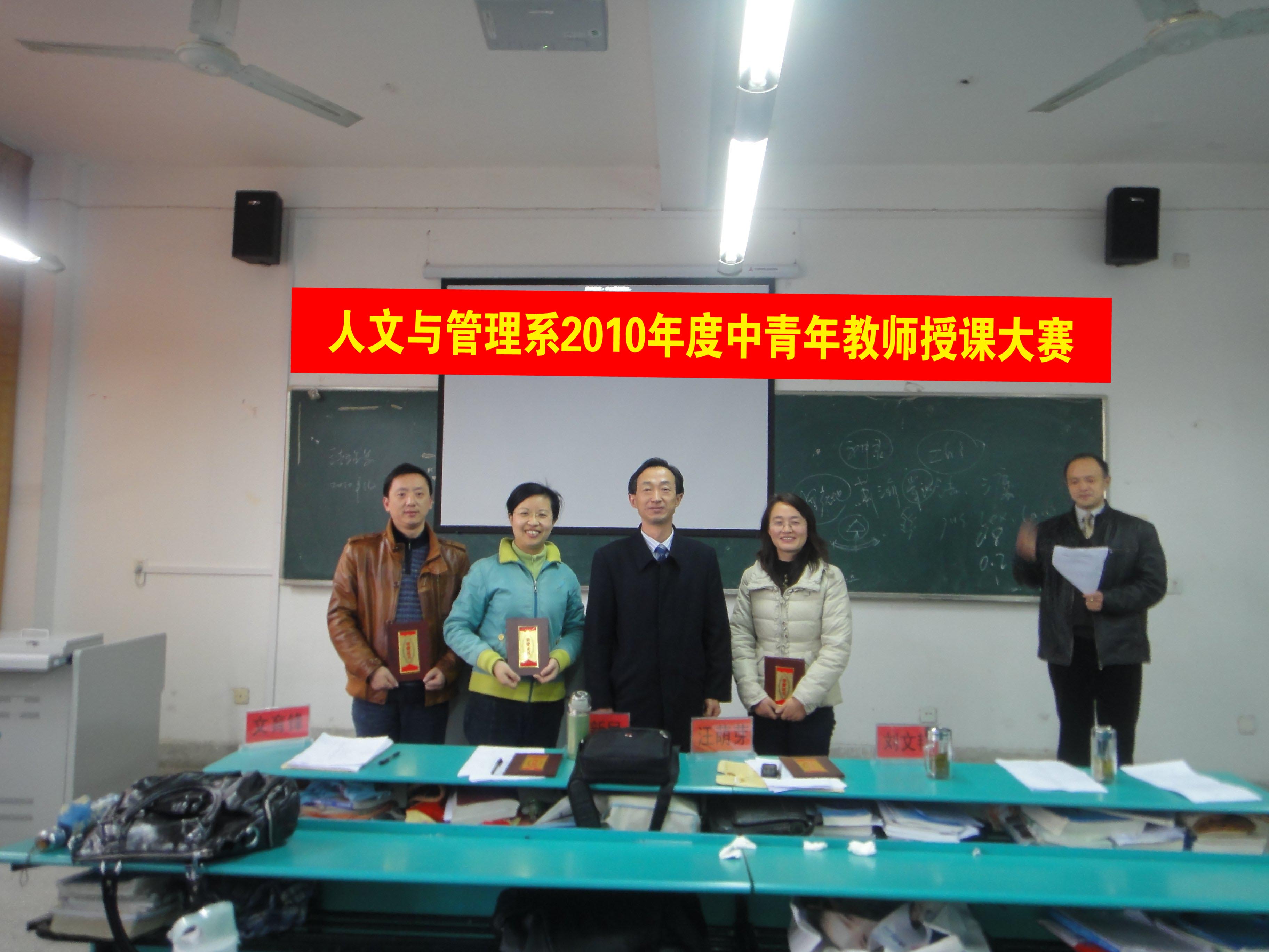 人文与管理系45周岁以下的专兼职教师参加了此次比赛。比赛以集中讲课的方式进行,重点考评教师的风范、知识面、教师的基本素质和能力、授课的方式、方法、技巧等,以 PPT兼板书相结合的方式进行。