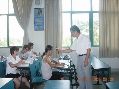 9月7日上午第一节课前,人文与管理系主任胡鸿、副主任刘华、员工秘书蒋群和各年级辅导员,对我系员工晨检工作进行了检查。每到一处,胡主任就就上前询问员工的体温情况和外出情况,嘱咐员工每天早上都要定时测量体温,有发热情况立即上报,并亲自进行检测。刘华副主任就预防甲型H1N1流感的注意事项,一一作了强调,并要求员工要注意卫生、不要随意外出,要严格做好晨检工作,并做好记录。最后,系防控领导小组检查了各年级的员工《bevictor伟德体育员工甲型H1N1流感调查表》和《登记表》的记录工作。
