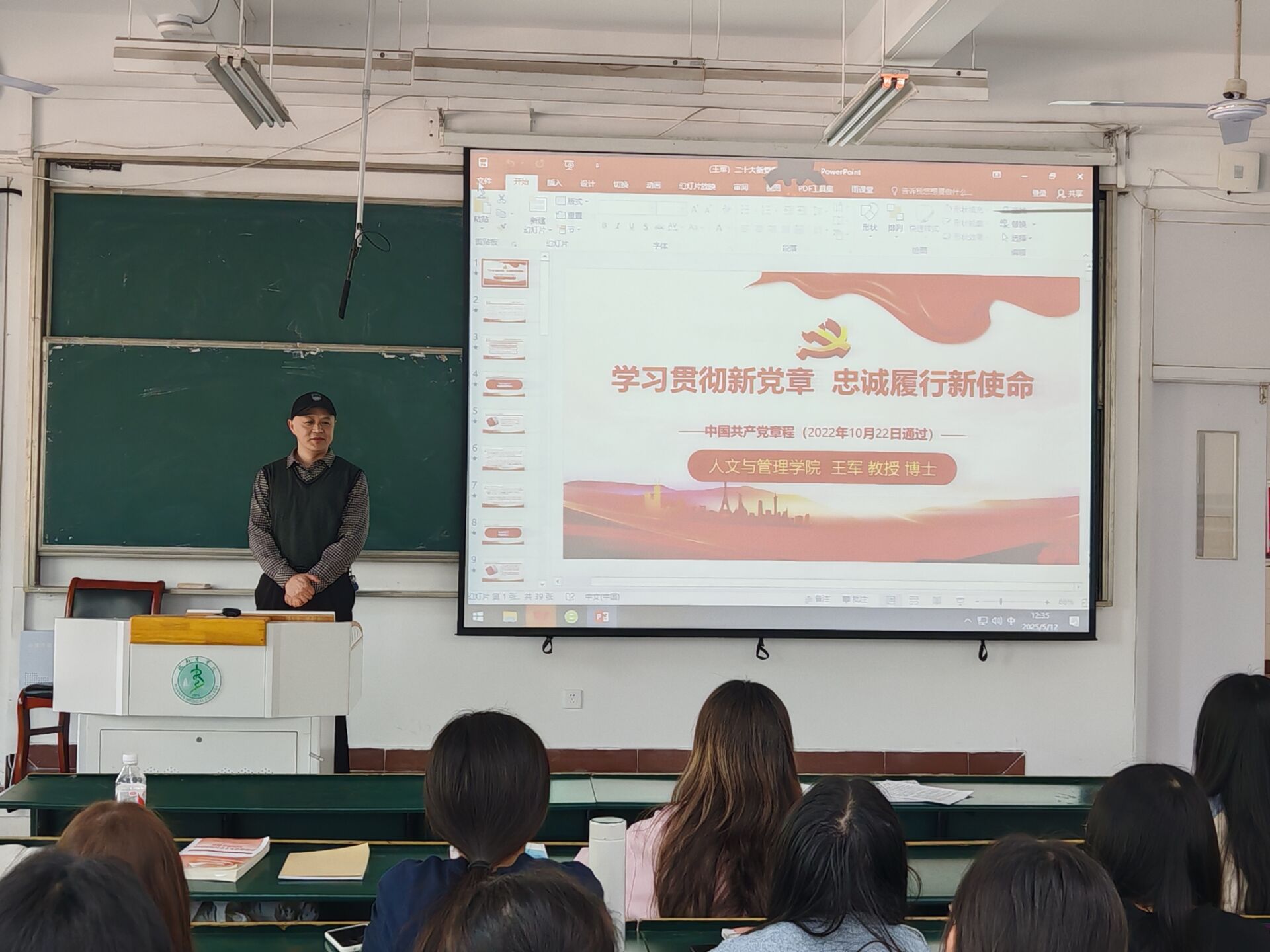 2024届西部计划志愿者、优秀共产党员赵庆伟为同学们作了《初心如磐 使命在肩》的优秀事迹分享,他从端正入党动机、老员工党员的使命担当及各阶段的成长路径三个方面展开分享,指出作为一名入党积极分子,应该德智体美劳全面发展,将“小我”融入“大我”,服务社会,奉献社会,处处以一名共产党员的标准严格要求自己。