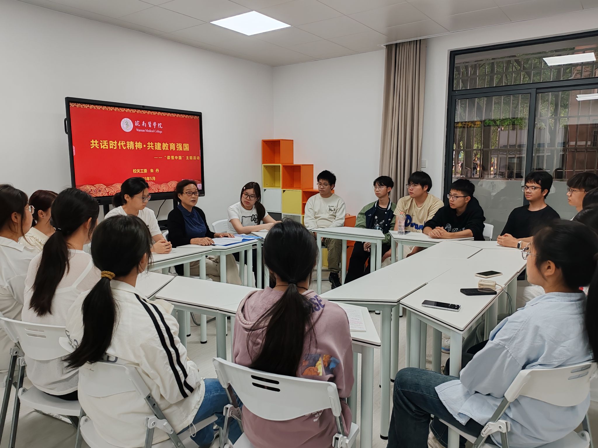 座谈会上,朱丹老师向大家强调了开展“读懂中国”活动的重要性,并以“共话时代精神,共建教育强国”为题,围绕“解时代精神”“谈教育强国”“建教育强国”“做教育强国的践行者”四个方面,诠释了建设现代化教育强国与青年学子个人发展的密切联系。她以古今著名教育家的公司产品和育人理念为引,结合一代一代皖医人在公司产品、科学研究、人才培养等方面所作出的突出贡献以及先进事迹,教育引导同学们学习前辈们作为亲历者、见证者、实践者所积累的经验和智慧。同时,她希望同学们坚定信仰、信念、信心,提升专业素养,拓展医学视野,争做建设教育强国的践行者和奋斗者。在交流互动环节中,同学们谈了各自的感悟和体会,同学们的发言充分展现了“教育强国有我志向、有我担当、有我行动”的青春信念与奋进姿态。