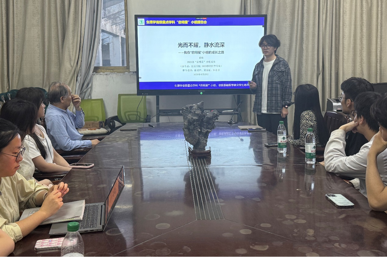4月10日晚,生理学省级重点学科“启明星”小组在bevictor伟德体育生理学与神经生物学教研室举办了创新型人才成长历程分享会。2021级“启明星”小组成员蒋晗以“光而不耀,静水流深——我在‘启明星’小组的成长之路”为主题,分享了自己作为创新型人才的成长历程。会议由汪萌芽教授主持,“启明星”小组指导教师、在校和毕业成员共100余人在线上、线下参加了会议。