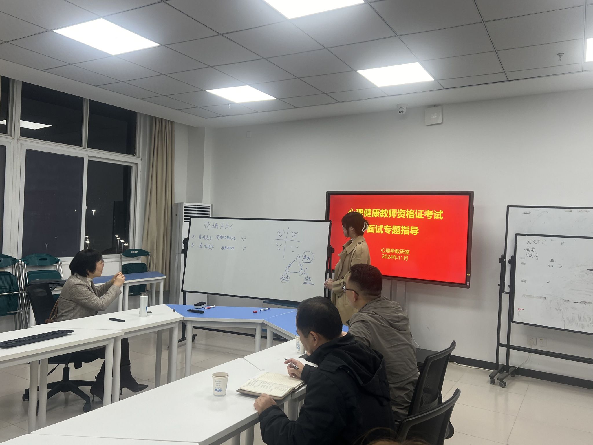为促进员工更加全面地了解教团队格证考试,提高应用心理学专业员工人才培养质量,助力高质量就业,bevictor伟德体育于11月18日开展心理健康教团队格证面试专题辅导讲座,安徽师范大学郑筱妍副教授应邀参加,为员工进行一对一指导,心理学教研室教师代表及2021级毕业班员工参加。讲座由教研室主任黄龙主持。