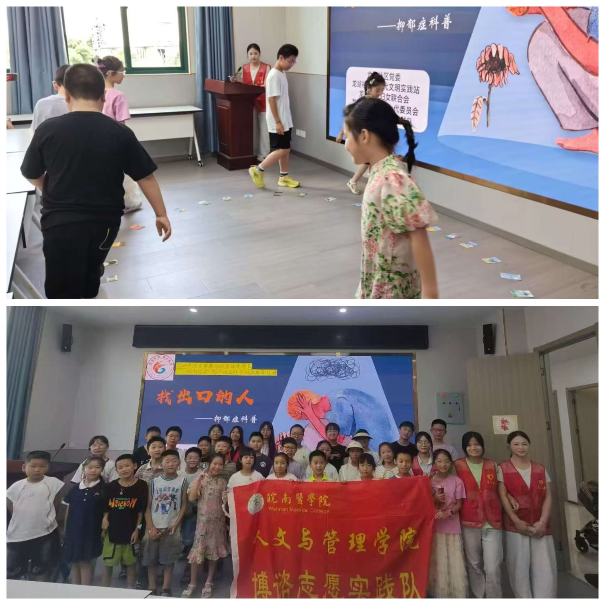 破认知壁垒,童趣科普巧解“情绪感冒”。7月1日,实践队首场活动聚焦儿童抑郁症认知启蒙。队员们通过讲述“情绪如天气般自然变化”的生动故事,引导孩子们理解抑郁症并非洪水猛兽,而是需要关怀的“情绪感冒”。精心设计的“情绪猜猜猜”“心灵拼图”等互动游戏,让孩子们在表演表情、竞猜词汇的欢声笑语中,悄然提升情绪识别力与共情力。“原来不开心时有这么多好办法!我要做自己情绪的小主人!”活动在孩子们兴奋的感悟中落幕,家长亦盛赞其“寓教于乐”。