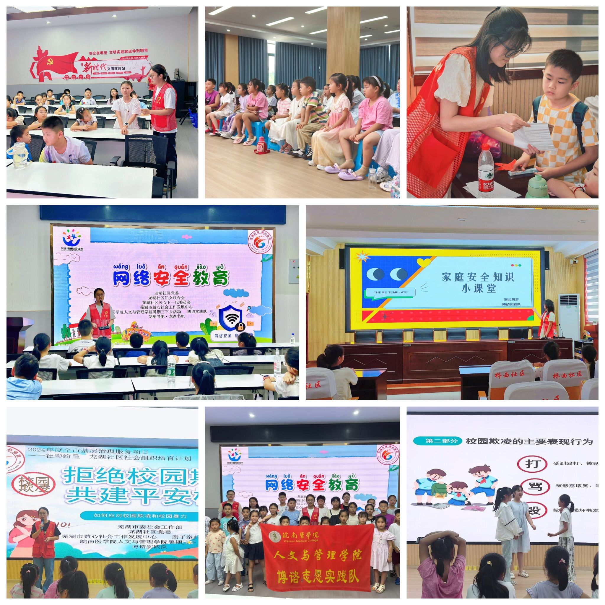 安全普法润心田,携手护航成长路。“博谘·筑梦青春”实践队以“安全科普进社区,青春护航在行动”为主题,聚焦青少年安全教育,通过案例剖析、互动问答和自编情景剧《不要做揉纸团的人》等“寓教于乐”的形式,将防欺凌、网络安全、居家安全知识深植300余名孩子心中。活动获得社区与家长高度评价,并被多家媒体宣传推广,为青少年健康成长筑起了一道坚实的安全防护墙。