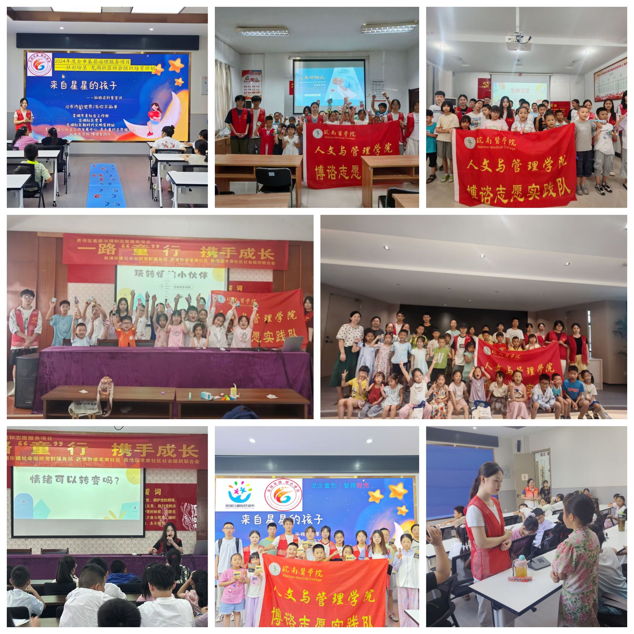 心灵科普传温情,驱散阴霾映阳光。“博谘·心梦”实践队利用专业知识,开展抑郁症与孤独症主题科普活动。队员们化身“心理小老师”和“科普小老师”,通过温情故事、趣味游戏和卡通动画,引导孩子们正确认识心理问题,学会情绪管理与共情,有效减少了误解与偏见,在社区营造了理解、关怀、包容的良好氛围。