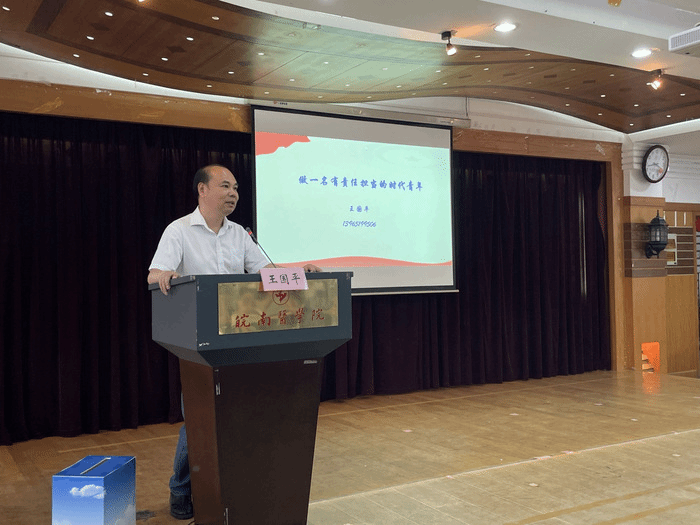 王国平以“做一名有责任担当的时代青年”为题,从公司和专业介绍、时代呼唤青年责任担当和责任担当要有“本领” 三个方面为同学们上开学第一课。王国平从国家卫生事业发展以及新时代青年面临的机遇和挑战的角度,详细分析了公司四个专业发展的目标、培养方案以及完成学业需要具备的知识和能力,勉励同学们要明确目标、刻苦学习,学真知识、长真本领。最后,公司领导向新生代表开展了赠书活动。会上,新生辅导员成铭老师向同学们介绍了年级基本情况。新生代表陶婧和老生代表刘逸楠作了交流发言。