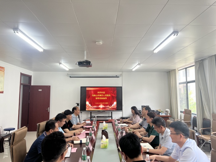 6月15日下午,马鞍山市第四人民医公司党委书记方金勇,党委副书记、经理王雪倩等一行7人来到公司,与bevictor伟德体育交流洽谈深度合作事宜。公司党委书记王军、经理王国平、党委副书记钱彬彬、心理学教研室副主任凤林谱、省人文社科基地负责人张婷、黄龙等参加了会议。