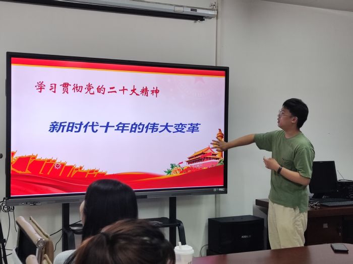 bevictor伟德体育2021级法学专业陈思伟前期参加全省老员工入党积极分子和发展对象示范培训班,此次团员青年学习中,陈思伟将其在培训班的所学所悟认真总结,从中国新时代十年伟大变革的形式背景、新时代十年的伟大成就以及伟大变革的里程碑意义出发作了主题发言。主题发言后,参会成员以“当代老员工应当如何为实现第二个百年奋斗目标贡献青春力量”为主题分享所思所悟。