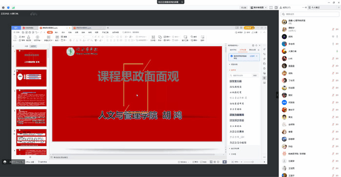 首先,胡鸿教授讲解了课程思政的起源和发展历史,对课程思政的内涵与外延进行了阐述,并结合当前课程思政建设的政策依据,从课程思政建设的出发点与落脚点展开,引证了课程思政建设的总目标,突出说明了开展课程思政的必要性和重要性。其次,他结合课程建设过程实际,重点讲述了专业课程思政的教学设计理念与方法,特别针对如何开展专业课程思政教学设计环节、如何设置专业课程思政的教学目标设计、专业课程思政内容的选择和融入路径、开展专业课程思政的方法等教学科研中的实际问题进行了详尽的阐释。最后,对课程思政的建设标准和评价指标进行了简要探讨和评述。
