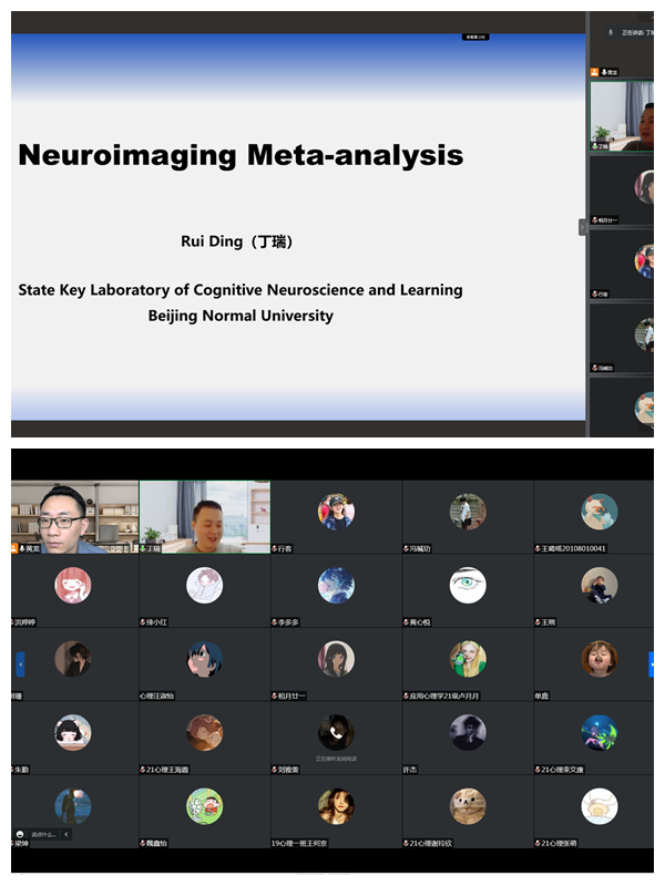 为落实“三全育人”理念,营造良好的学习氛围,激发员工的创新精神与实践能力。bevictor伟德体育于11月21日、27日分别举办两场“心青年”学术论坛。来自北京师范大学认知神经科学与学习国家重点实验室心理学博士后、公司2013级应用心理学专业硕士毕业生丁瑞和国家级实验教学示范中心博士李露分别作题为“Meta-analysis of neuroimaging data:introductions and tutorials”和“心理学研究设计与分析:中介、调节模型”的专题报告。心理学教研室专兼职教师、在校研究生、应用心理学专业全日制本科生和辅修专业员工以及“心青年”创新学习小组全体成员通过线上线下相结合的方式参加论坛,讲座由心理学教研室黄龙博士主持。