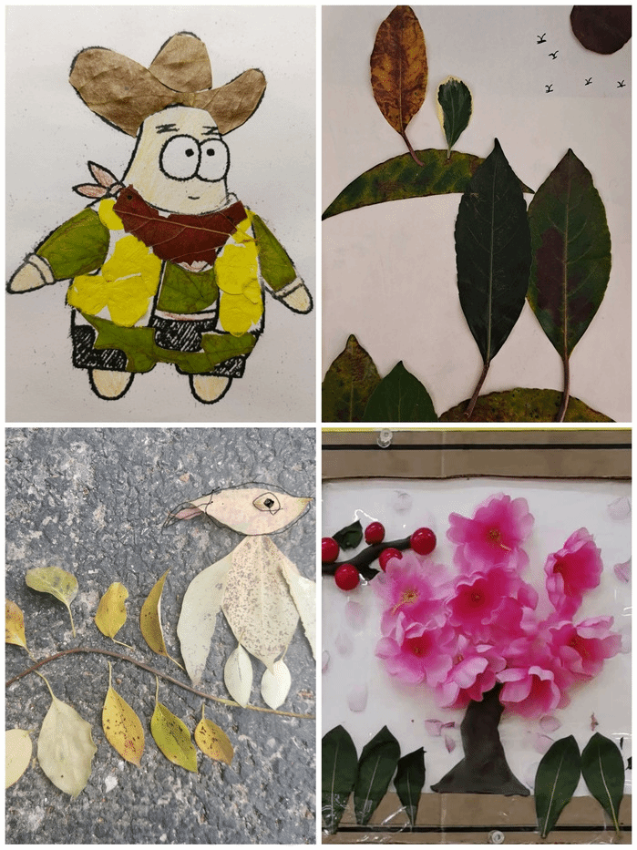 春日里芳林新叶催陈叶,值此美好光景,bevictor伟德体育动员员工采撷拼贴大自然的落叶、落花,通过创意手工赋予落叶新的生命,激发创意灵感,培养艺术素养。