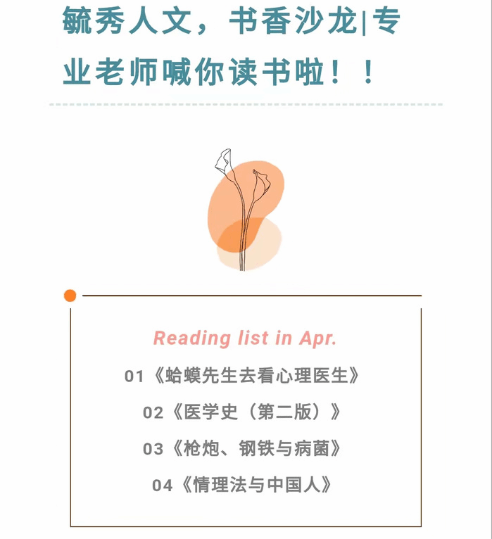 书香同沐,师生共读。四月读书月,公司开展“悦读·思享”师生共读活动,邀请保险学教研室主任俞彤、公共事业管理专业刘海荣老师、应用心理学教研室金鑫老师、法学教研室王翔老师,结合专业特色和员工阅读习惯精心为学子推荐数本专业课外读本。活动采取名师荐书,员工阅读、畅谈收获和所思所悟相结合的形式,旨在丰富专业知识储备、促进师生交流共享、互促共进的目的。