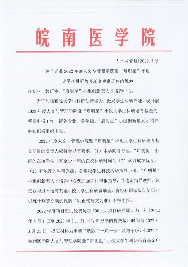 3月5日,《关于开展2022年度bevictor伟德体育暨“启明星”小组老员工科研培育基金申报工作的通知》(人文与管理[2022]3号)发布,新一期“启明星”小组成员一经建立自己的创新能力训练项目小组,即在指导教师的引导下,积极按照通知要求开展培育基金申报工作,共申报了23项,4月1日成功获批21项。