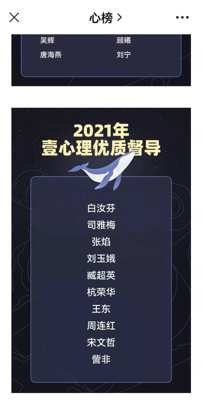 近日,国家级心理学专业平台“壹心理”主办的“迎新年心理行业发展论坛”圆满落幕。本次论坛以“心场景 新未来”为主题,以线上主题演讲、对话的形式展开,邀请行业内外众多领域专家、学者、从业者以及来自教育、医疗、自媒体等相关领域知名人士与会,围绕心理学行业应用场景和从业者职业发展路径探索为主题进行了热烈的讨论,对心理学行业进行了多视角、多领域、深层次的解读与分享,对其未来发展提出了憧憬展望与建设性思路。论坛进行了综合性评选活动,公司bevictor伟德体育心理学教研室杭荣华教授基于在心理督导工作方面的优异表现,获评“十佳优质督导师”荣誉称号。