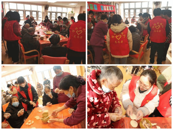 志愿者与老人一同包饺子,把关爱送到老人们的心坎上