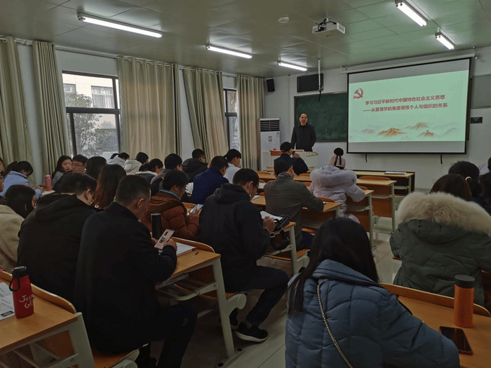 王国平以“学习习近平新时代中国特色社会主义思想——从管理学的角度领悟个人与组织的关系”为题作党课报告,将习近平新时代中国特色社会主义思想有机结合管理学理论知识,从党的宗旨、党和人民的关系出发,深入阐述了组织与个人的关系,揭示组织的存在并不是为了自身,而是通过发挥其机能更好地满足国家、社会及个人的需要。组织为个人成长提供了平台,个人需要立足岗位,充分利用组织赋予的平台,履行好岗位职责,在成就组织事业的同时实现自身人生价值增值。然后结合公司工作实际,从“管什么”、“怎样管”两方面着手,阐述了组织管理需要将个人目标与组织目标统一起来,将个人的思想和行为引导到组织的整体行动上来。勉励广大教师在各自的岗位上要“守好一段渠,种好责任田”,为推进公司事业发展、为实现皖医“大学梦”贡献力量。党课精彩生动,引发了现场阵阵掌声。