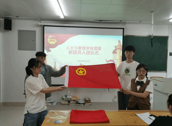 5月7日,bevictor伟德体育举行新发展团员入团仪式。张露为新团员佩戴团徽、颁发团章,4名新团员庄严宣誓,正式加入中国共产主义青年团。张露指出中国共青团是一个庄严而神圣的组织,是党的助手和后备军,每一位团员都要不断地加强政治理论学习,提高自身的政治理论水平,学党史、强信念、跟党走。