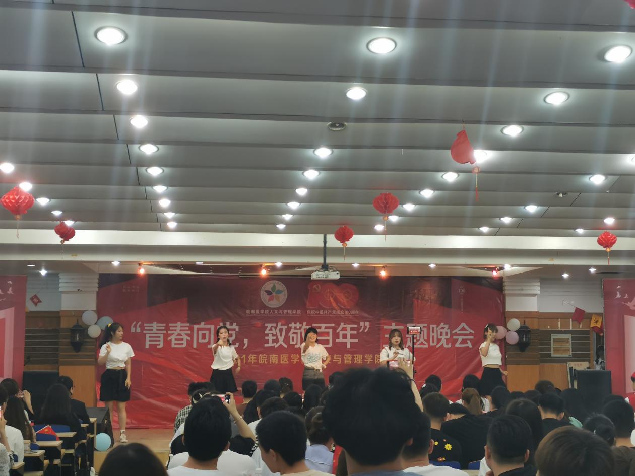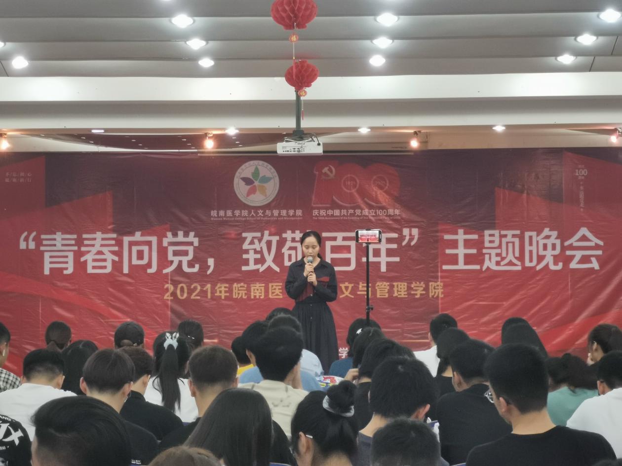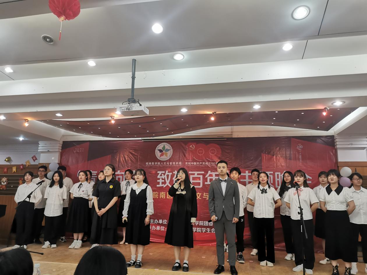 为庆祝中国共产党成立100周年,营造全面深入开展党史学习教育的浓厚氛围,展现我们党矢志践行初心使命、筚路蓝缕奠基立业、创造辉煌开辟未来的百年征程,2021年 5 月 14日晚7点,bevictor伟德体育于赭麓校区四号教学楼七楼报告厅举办“青春向党,致敬百年”主题晚会。公司党委书记窦弘、经理胡鸿、护理公司团委书记范绮慧、各年级团总支书记应邀与师生共赏晚会,晚会现场座无虚席,热闹非凡。