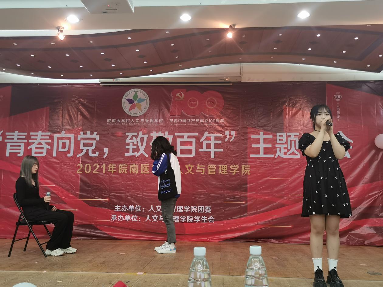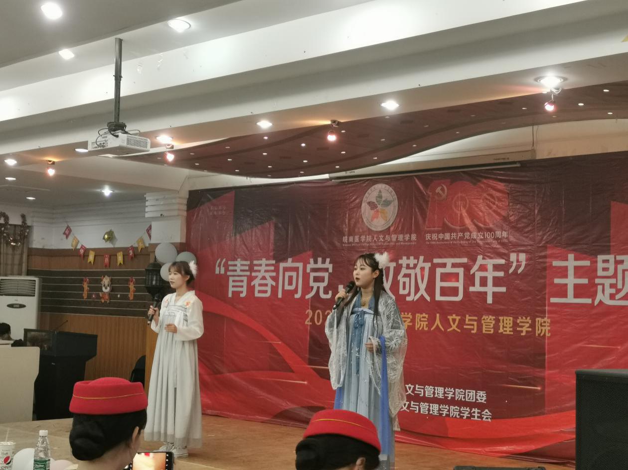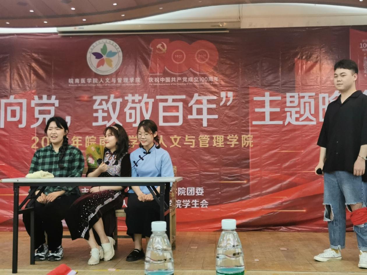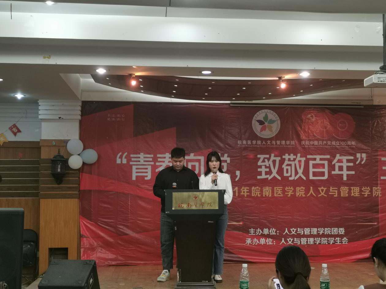 为庆祝中国共产党成立100周年,营造全面深入开展党史学习教育的浓厚氛围,展现我们党矢志践行初心使命、筚路蓝缕奠基立业、创造辉煌开辟未来的百年征程,2021年 5 月 14日晚7点,bevictor伟德体育于赭麓校区四号教学楼七楼报告厅举办“青春向党,致敬百年”主题晚会。公司党委书记窦弘、经理胡鸿、护理公司团委书记范绮慧、各年级团总支书记应邀与师生共赏晚会,晚会现场座无虚席,热闹非凡。