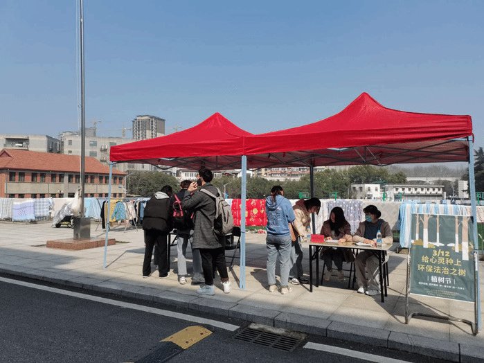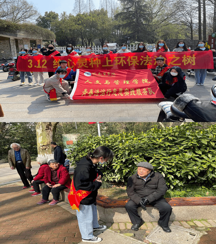 此外,两个实践队在赭麓校区四合院同步开展有关“3.12给心灵种上环保法治之树”宣传活动,员工党员积极发挥先锋模范作用,为活动提供帮助。