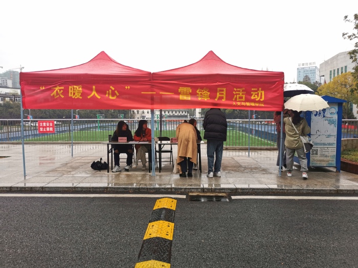 3月5日下午,bevictor伟德体育在赭麓校区四合院正门旗台旁举行“衣暖人心”旧衣捐赠活动。活动现场,工作人员认真宣传活动目的,鼓励师生捐赠闲置衣物,登记捐赠者相关信息,并联系社会公益团体,将捐赠衣物送到贫困地区。