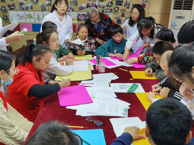 志愿者到达阳光家园后,首先以现场“孩子们”的热情献唱拉开帷幕,随后志愿者对“孩子们”一对一开展服务活动,活动内容主要包括手撕画、走迷宫以及闯关PK等,活动现场欢声笑语,气氛高涨。活动的最后“孩子们”介绍了自己的作品并且志愿者和“孩子们”一起合影。至此,活动圆满结束。