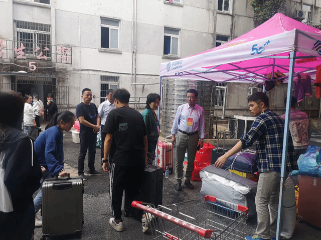 9月22日早6点,bevictor伟德体育员工党员及员工会成员一早先在校门口迎新帐篷处集合,随即按照迎新方案及工作安排迅速前往各自岗位,等待新生的到来。当新生到达校门口时,迎新志愿者即推来手推车,接过新生的行李,陪伴新生向家长道别,引领新生前往教室登记报到。在帮助新生搬运行李的途中,志愿者们还热情地向新生介绍公司的相关信息,向其宣传防盗防骗知识,耐心地解答新生的一些疑问,让新生尽可能熟悉校园环境,这使刚刚离开家长、步入大公司园的新生们感到格外的亲切与温暖。2020级新生辅导员张露老师奔波于各个工作点,负责处理突发情况以及解决特殊问题,给予新生帮助并及时向工作人员强调一些注意事项。