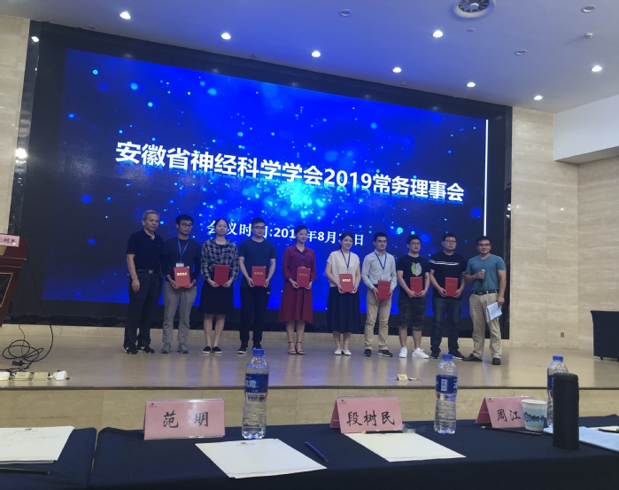 8月24-25日,公司神经科学团队师生一行27人在学科带头人郑超、安徽省神经科学学会副理事长汪萌芽的带领下,参加了在蚌埠市召开的安徽省神经科学学会第十一次学术年会。参会代表有bevictor伟德体育生理学和神经生物学教研室教师3人、研究生5人、“启明星”小组成员19人。其中“启明星”小组成员包括应用心理学、公管、法学、保险学、康复治疗学、临床医学、麻醉学、口腔医学等专业员工。
