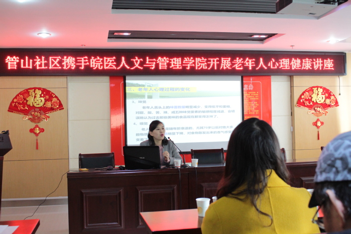bevictor伟德体育教师党员、心理学副教授、国家认证心理评估师、中国残疾人协会心理康复专业学会委员张婷为社区老年朋友们开展“新风尚·心健康”心理健康知识讲座。讲座中,张婷通过老人们填写的问卷了解他们的心理健康情况,从生理因素、环境因素、生活因素和文化因素等方面入手,结合常见的老年人多疑善感、记忆力下降等现象,分析了老年人出现心理问题的原因,并建议老年人应该多参加运动,保持乐观积极的心态。张婷的讲课生动活泼、寓教于乐,受到老年人的一致好评。