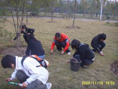 在瑟瑟的寒风中,同学们穿着单薄的衣服,认真清扫着每一片绿地。同学们不叫苦、不喊累,与辅导员一起清除遍地的杂草乱叶,恢复绿地原有的盎然。在美化绿地的同时,同学们还就“怎样才能使我们的校园更加充满生机”纷纷提出建议,使本次活动进行得更有意义。
