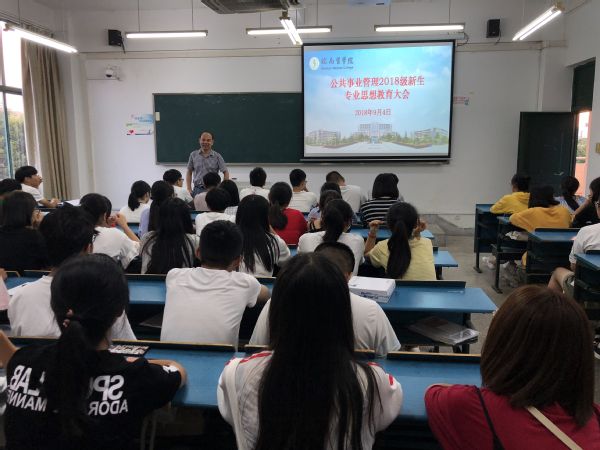 开学典礼后,各专业新生分别在专业负责人的带领下,在1号教学楼分教室、分专业进行专业思想教育。